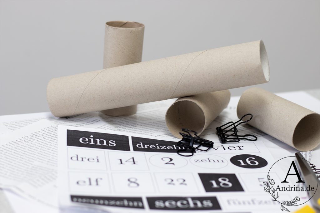 Papprollen fallen fast täglich an – sei es beim Toilettenpapier oder der Küchenrolle. Warum also wegwerfen, wenn man daraus etwas Wunderschönes basteln kann? Der Kalender ist: