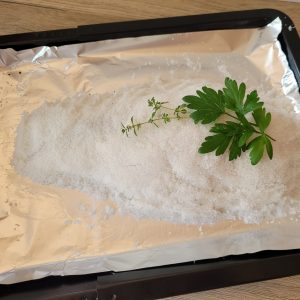 Die Salzkruste hat eine besondere Funktion: Sie schließt den Fisch luftdicht ein, bewahrt sein volles Aroma und schützt ihn vor dem Austrocknen. Keine Sorge – der Fisch wird nicht versalzen, denn die Kruste bleibt außen und sorgt für einen gleichmäßigen Garprozess.