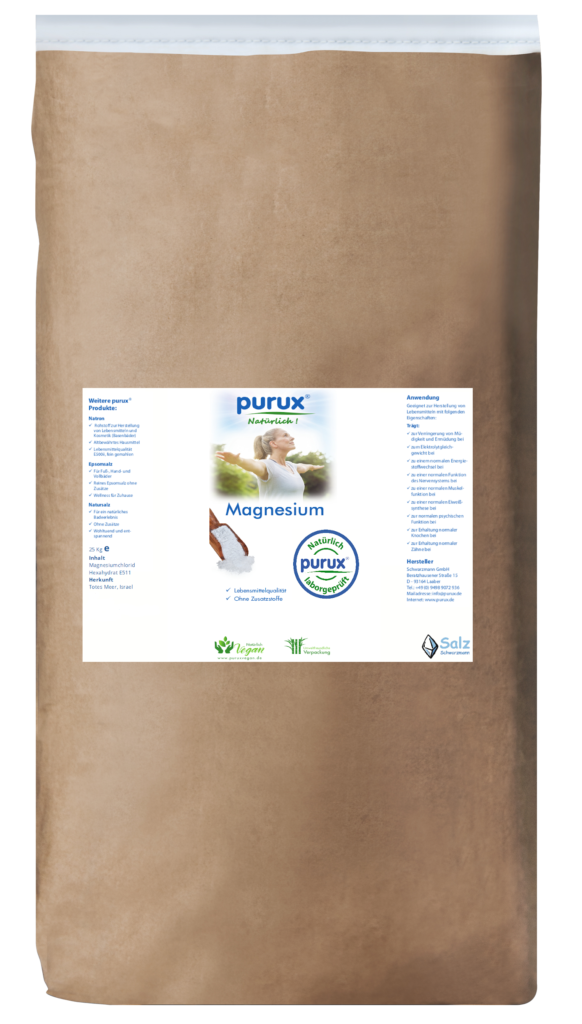 Bei purux ist Umweltschutz ein wichtiges Thema und sind stolz darauf, unseren Kunden Magnesium in umweltfreundlichen 25-kg-Papiersäcken anzubieten.