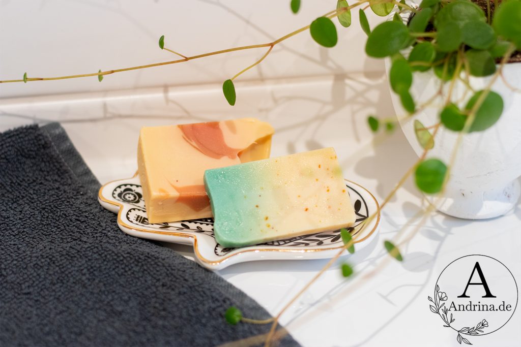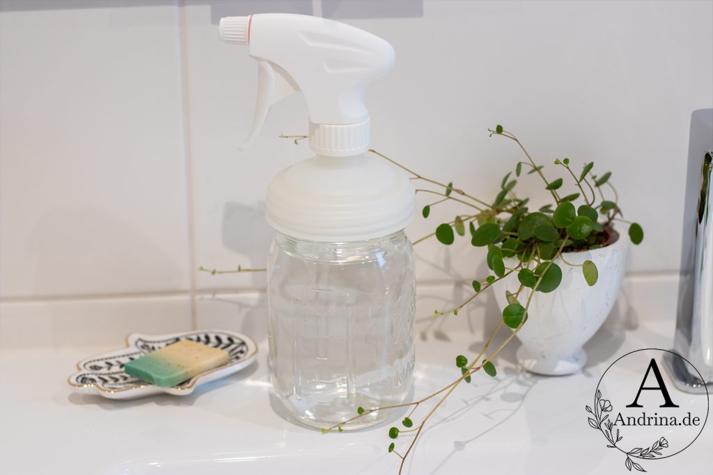 Bei Seifenresten – die oft richtig hartnäckig sind – sprühe ich 12%iges Wasserstoffperoxid drauf. Nach ca. 45 Minuten kann man die Flecken einfach abwischen und dann mit Wasser nachspülen.